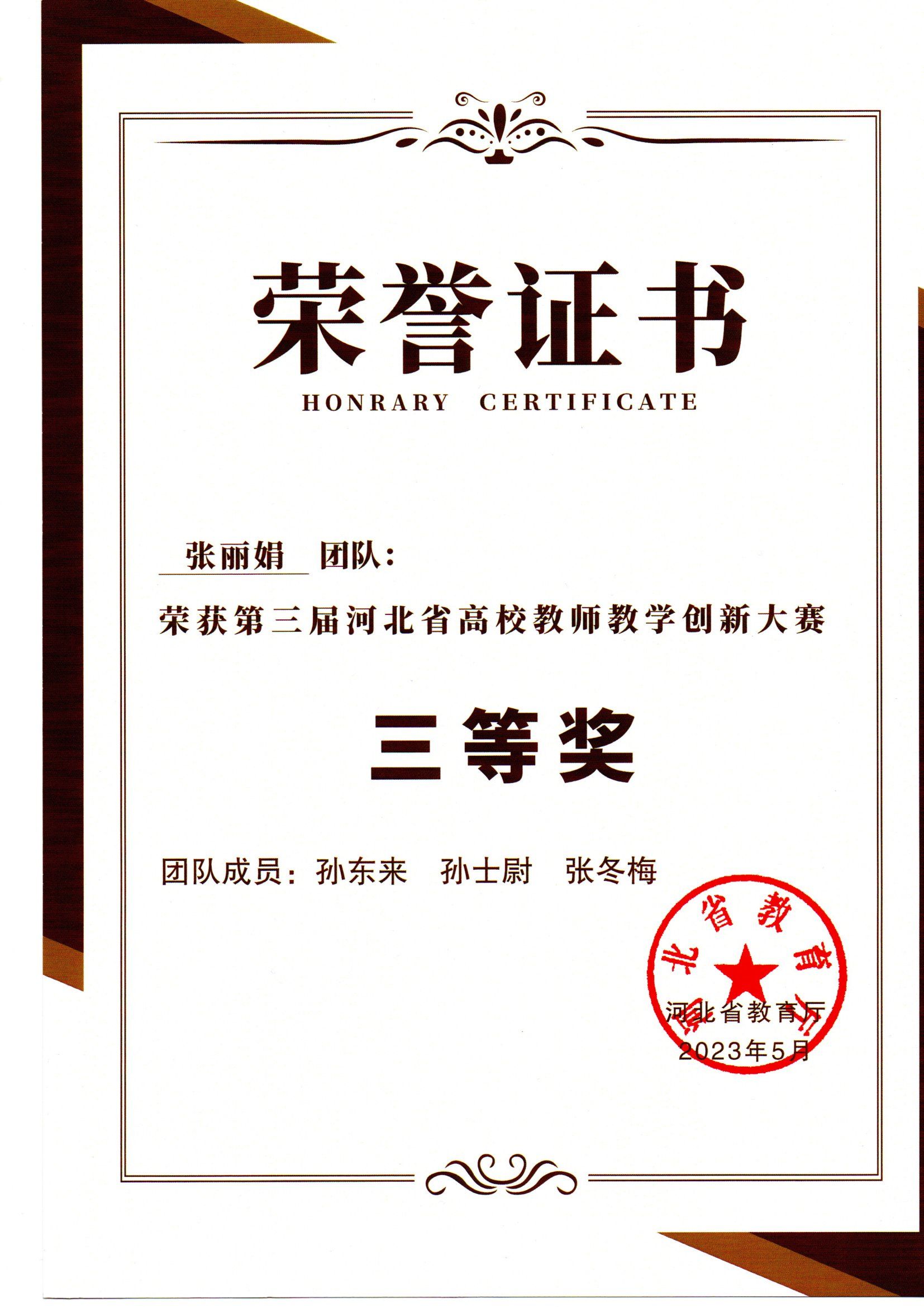 张丽娟老师团队荣获第三届河北省高校教师教学创新大赛三等奖