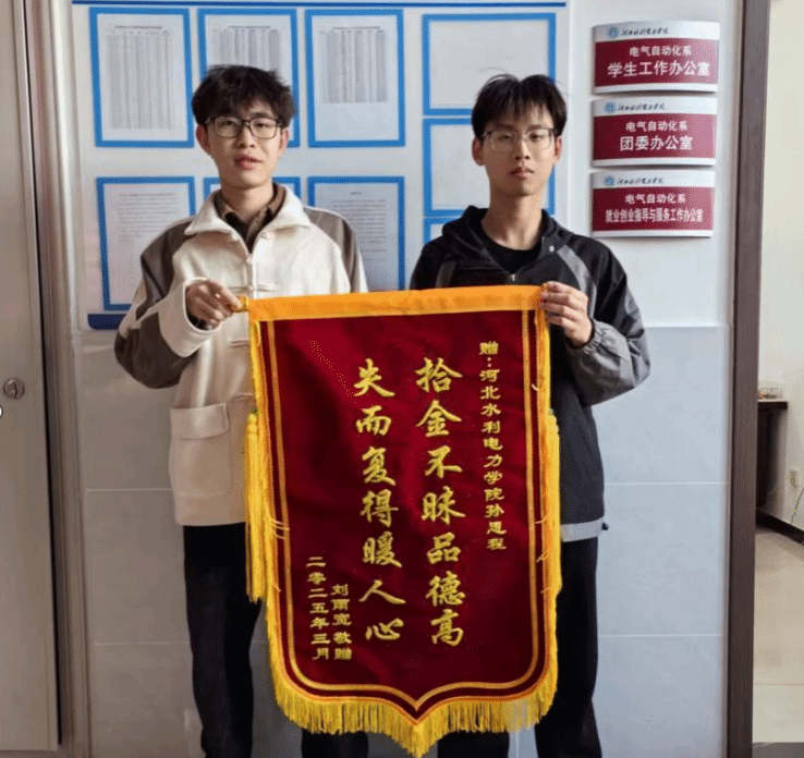 为感谢孙思程同学的善举,失主特意送来了一面锦旗,这面锦旗不仅是对孙思程个人优良品德的赞美,更是对育人工作的充分肯定。希望同学们能以他为榜样,在生活中坚守道德底线,传递温暖与善良,让拾金不昧的传统美德在校园中绽放更加绚丽的光彩!