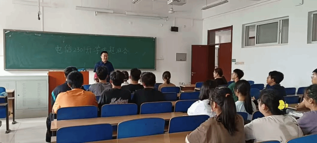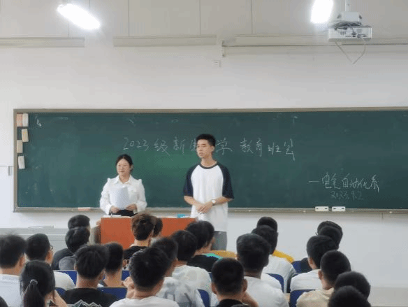 班会课上,辅导员老师们首先对2023级新生们今后迈向新征程表示热烈的祝贺。随后,辅导员、党员助理与新生们相互介绍,促进班级师生、同学之间相互了解。接着,老师根据学院下发的文件要求,介绍新生入学教育的各项安排,包括入学报到、军训细则、近期安排和其他注意事项等几个方面,便于新生入学教育及军训等工作顺利开展。最后,针对校园用电安全、校园电信诈骗、校园网络安全等问题,老师提醒同学们用电安全不容忽视,在宿舍中严禁使用明火,在生活中要谨防网络诈骗,提高自我防范意识,更好拥抱美丽的大学生活。