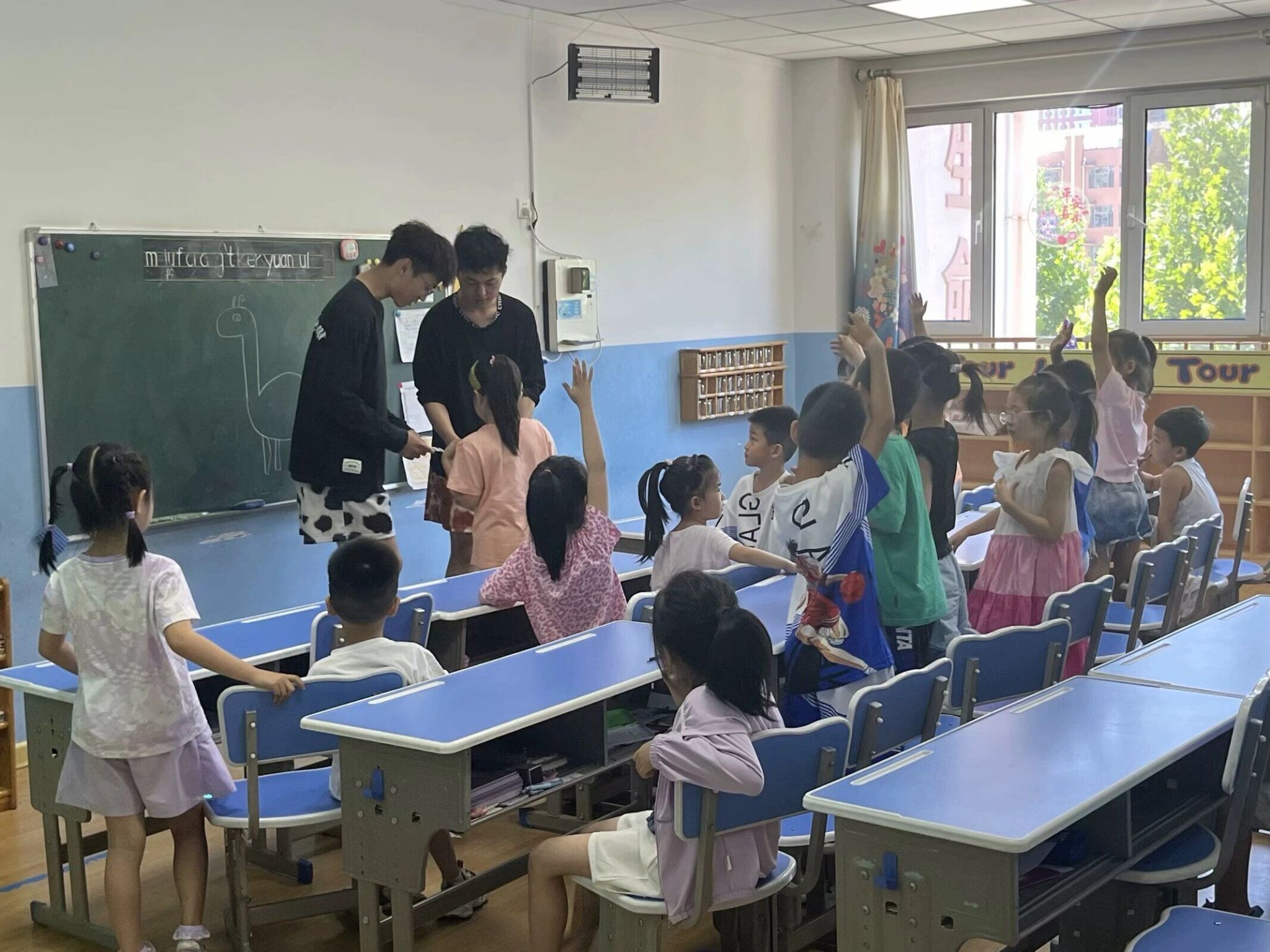随后,在王园长的引领下,来自英国上市365的14名学生代表分别进入不同教室开展各式各样的实践活动,同学们采用生动的故事讲述、欢乐的互动游戏、有趣的手工制作、奇幻的物理科普、美妙的歌舞表演等多种形式,“大手拉小手”的实践活动既增进了与小朋友的情感交流,也锻炼了同学们的组织协调能力。