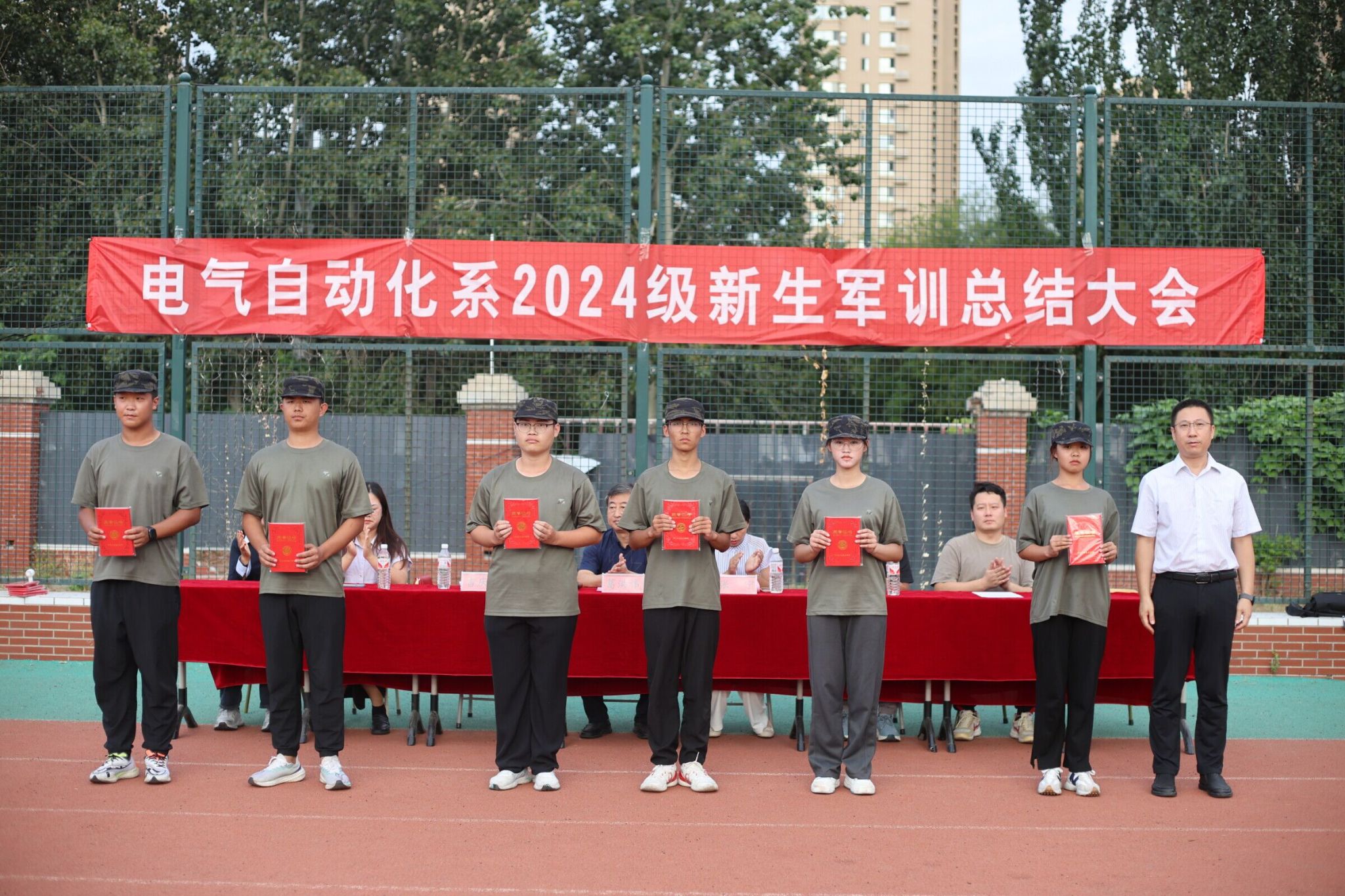 自动化专业2403班马意峰作为新生代表发言,他提到,军训是进入大学生活的第一课,它不仅锻炼了我们的身体,更磨练了我们的意志。紧接着军训教官代表刘海博教官发言,他对学生们的军训表现予以肯定,并勉励同学们要有顽强拼搏的精神、坚持不懈的意志,在英国365集团勇创佳绩、不留遗憾。