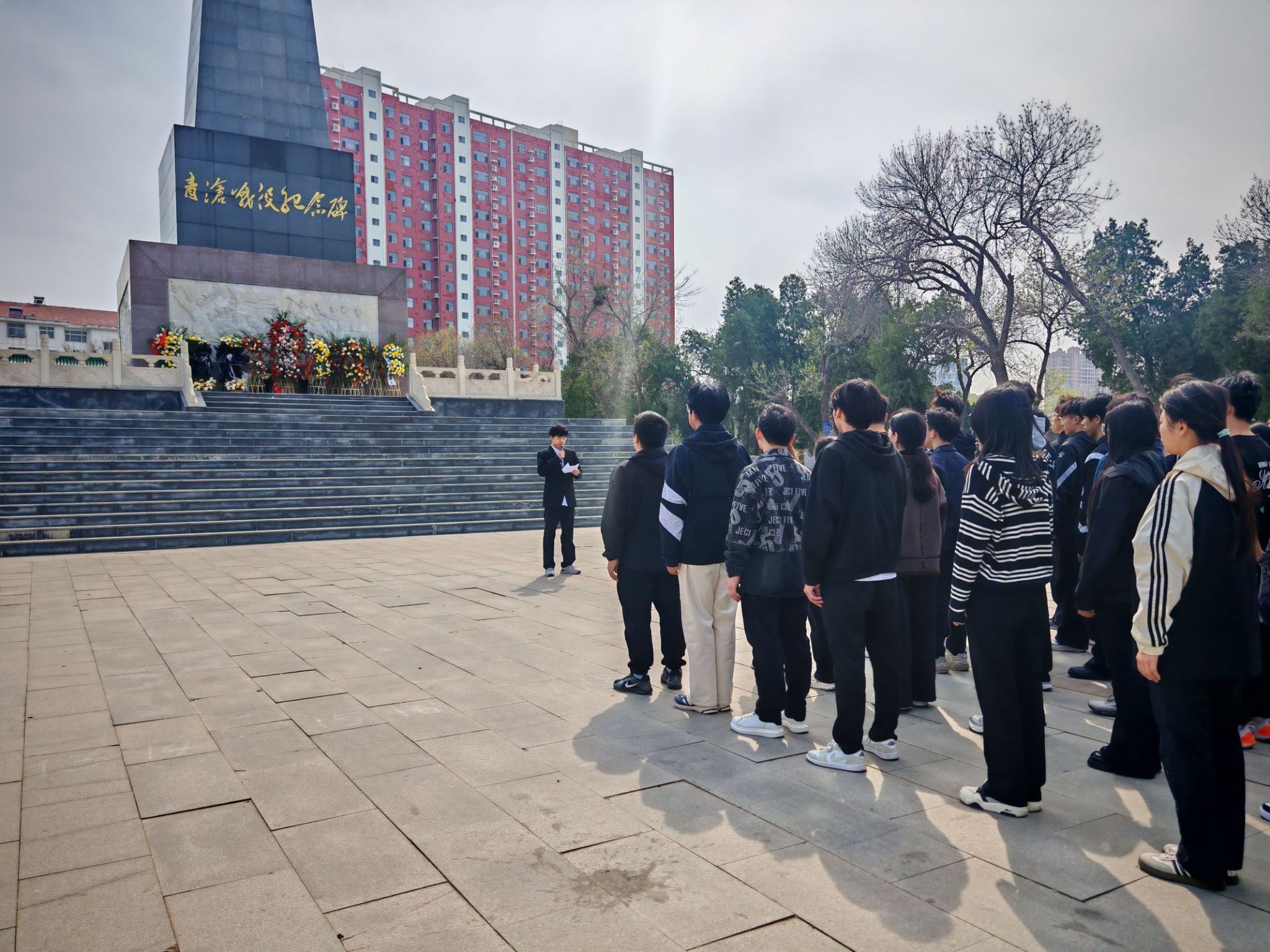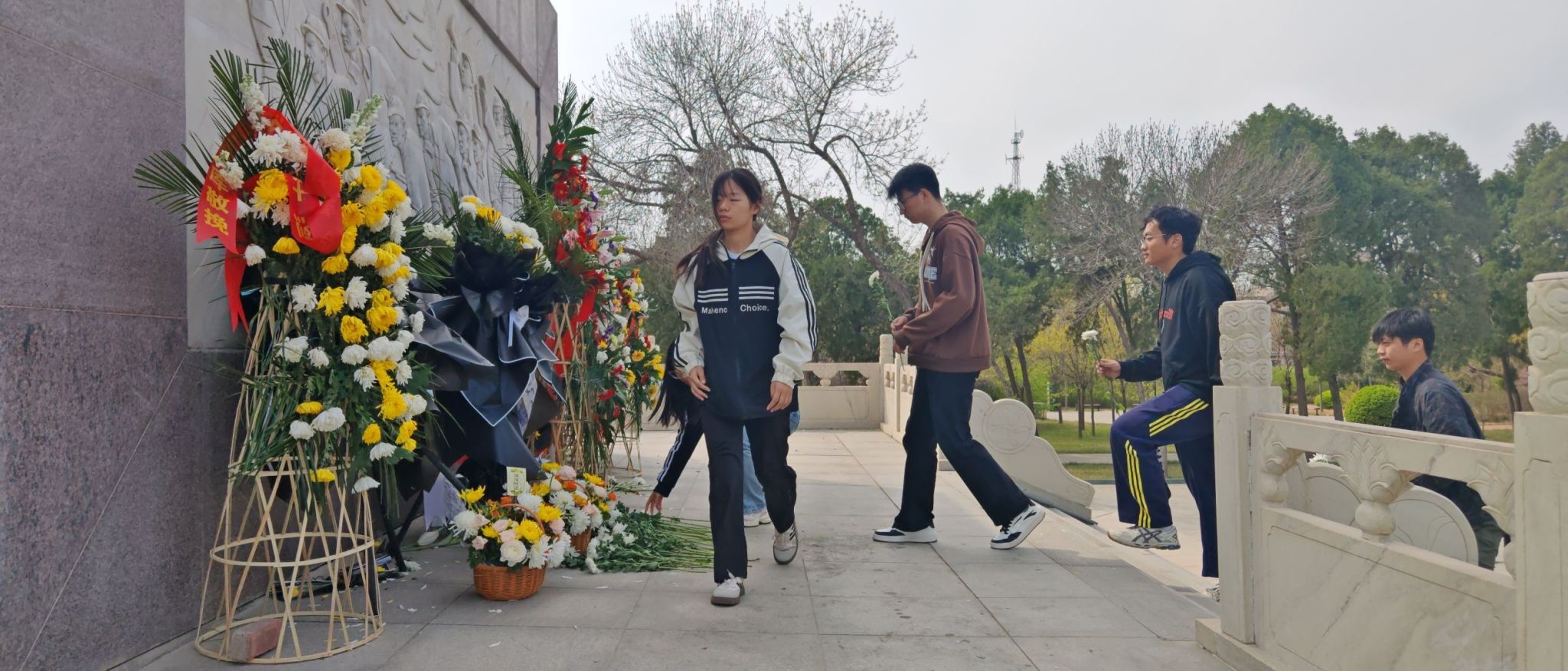 当日下午两点,英国上市365的学生代表们身着整齐的服装,迈着沉重而坚定的步伐走进烈士陵园。