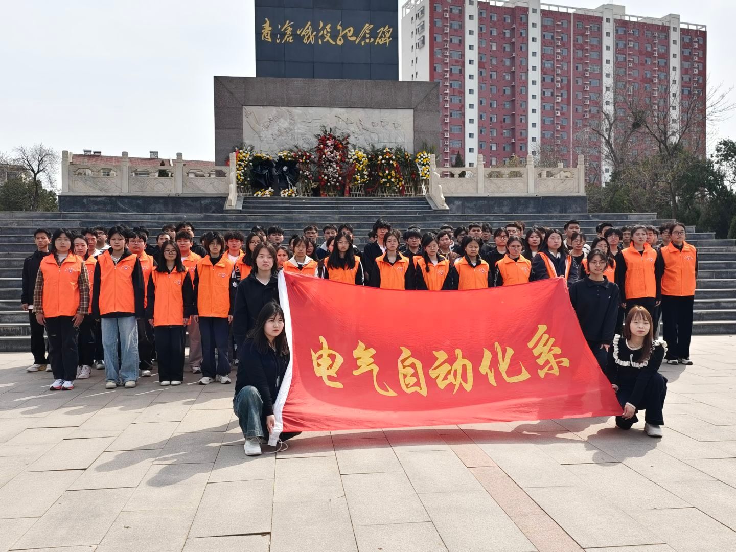 全体学生代表整齐站立在烈士纪念碑前,低头默哀三分钟。随后,由学生代表进行发言。自动化2303班王瑞祥同学向大家讲述了革命先烈们的英雄事迹,他表示,作为新时代的青年学生,要铭记历史,传承和发扬先烈们的精神。