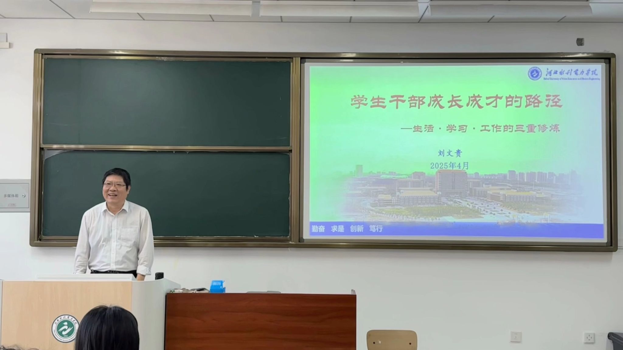 刘教授着重强调,作为学生干部,必须具备强大的抗压能力和坚韧的品质。面对工作中的困难与挑战,要保持积极乐观的心态,不断增强心理韧性,在挫折中成长,在困境中突破。此外,他还鼓励学生干部学会社交,与同学互帮互助,营造良好的团队氛围;常怀感恩之心,主动为父母分担家务,感恩同学的支持、老师的教导,以及祖国和时代赋予的成长机遇。