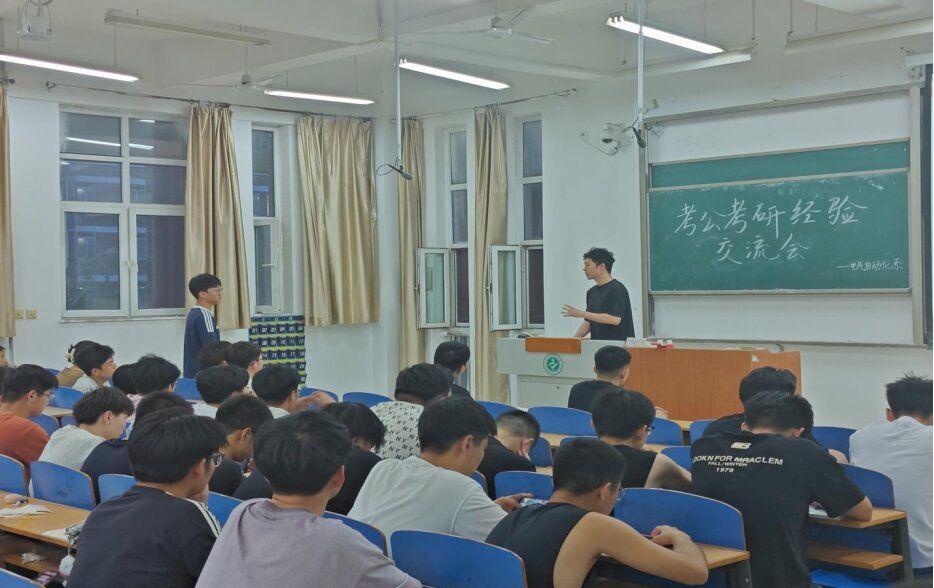 在考公经验分享环节,自动化2103班古鑫结合自身的考公经历,分享备考学习方法,同时也对大家在考公过程中遇到的各种疑问进行了解答。他提醒同学们要根据自身条件和优势,选择合适的岗位,提高“上岸”几率。在备考策略上,行测要注重每天练习真题,从真题练习中补足自身短板,既要保证速度,又要保证正确率。申论则要多关注时事热点,提高阅读理解和写作能力。