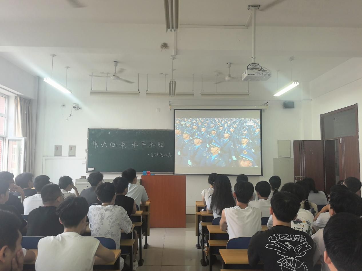 上午9时,师生们满怀期待地注视着大屏幕。当激昂的国歌奏响,五星红旗冉冉升起,澎湃的爱国激情在每个人心中涌动。阅兵仪式开始后,一个个徒步方队步伐铿锵、气势如虹;一支支装备方队铁流滚滚、威风凛凛;空中梯队呼啸苍穹、雄振寰宇。尤其是当展示国家科技实力和创新能力的新型武器装备亮相时,现场爆发出阵阵赞叹和热烈的掌声。这些凝聚着自动化、智能化、信息化尖端科技的“大国重器”,深深吸引着每一位电气自动化专业的师生。大家全神贯注,结合所学专业涉及的控制系统、驱动技术、传感检测等科学知识进行低声交流和探讨,浓厚的专业兴趣与炽热的爱国情感交织在一起。