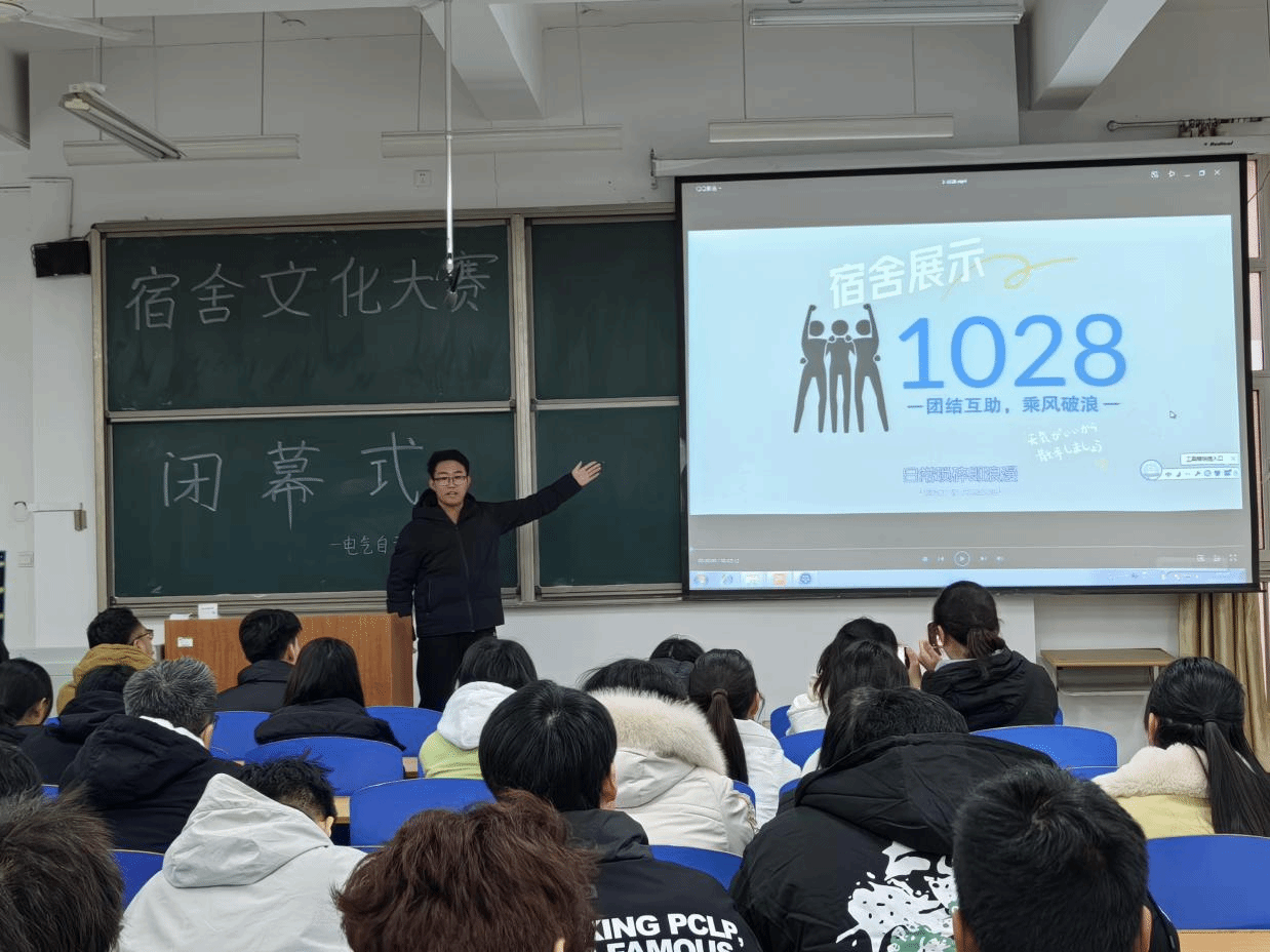 比赛前期,主持人简单介绍本次宿舍文化大赛的流程。在寝室文化展示环节,各组参赛选手分别从宿舍介绍、思想建设、学风建设、生活建设四个方面展现了各自的寝室文化与精神面貌,经评委现场点评打分后产生本次大赛获奖宿舍。随后,刘福志老师作总结讲话,他强调寝室是同学们生活学习的重要场所,是开展学生思想政治教育的重要阵地,是育人的重要课堂,宿舍文化大赛旨在营造温暖和谐的寝室环境,打造积极向上的寝室文化,希望参赛选手能够积极带动周围同学,将优良的寝室文化传递开来。