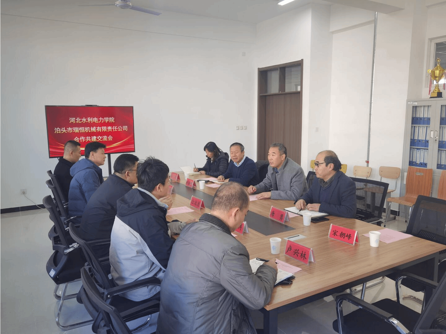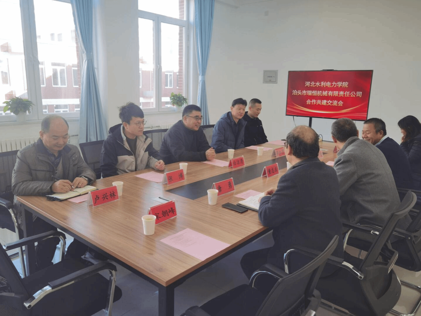 11月26日,泊头市瑞恒机械有限责任公司总经理白洁清率领副总经理董红昌、生产部经理卢兴林、工艺工程师张博、办公室主任刘瑞祥一行来到我校,就校企合作事宜进行洽谈交流。副校长董志良、机械工程系主任张铁壁、副主任石岩、继续教育中心主任宋朝峰、英国上市365主任唐勇出席了交流会。