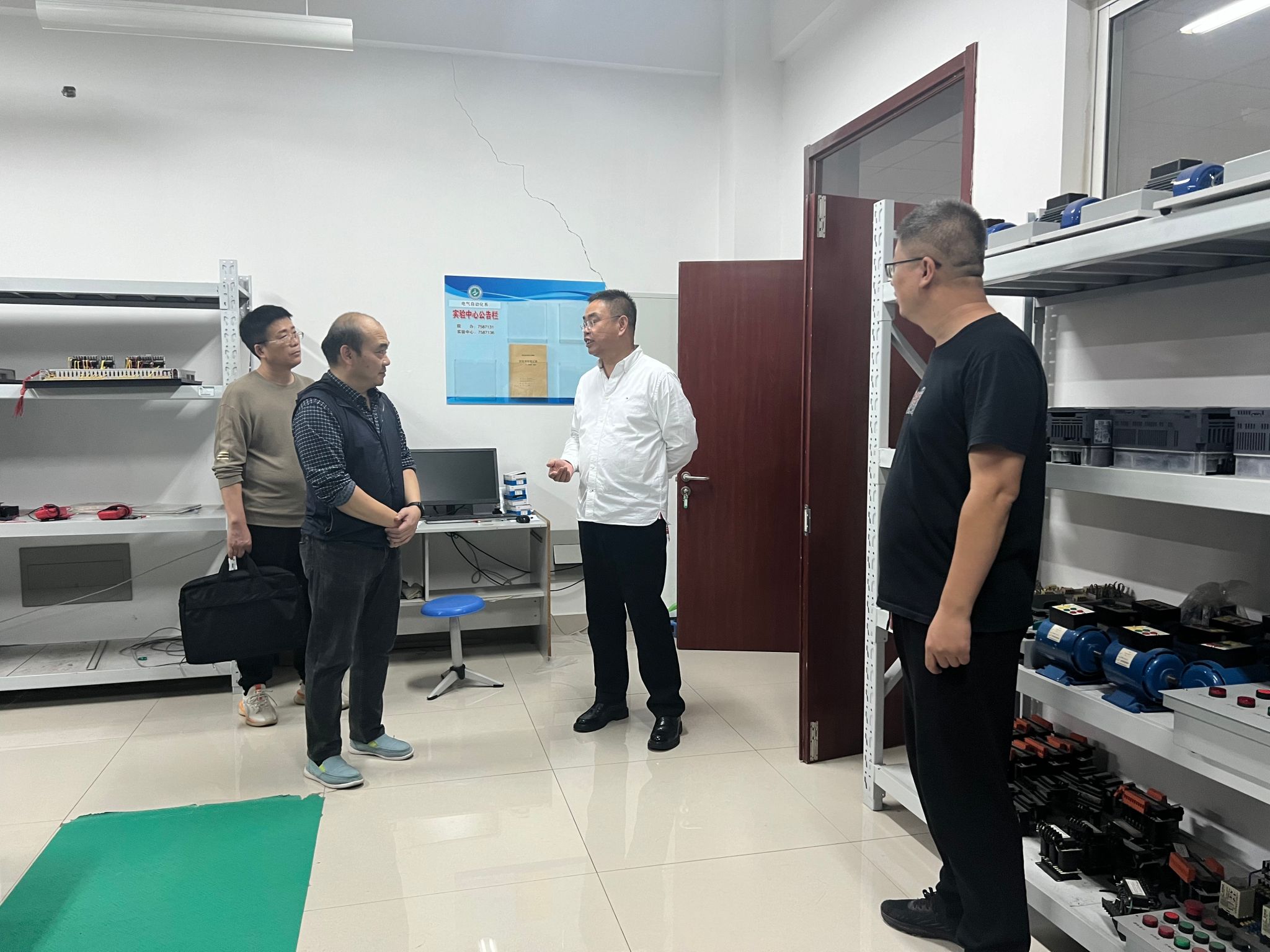 我系主任唐勇与实验室主任郑荣杰在日昌集团董事长参观过程中详细为其介绍了系部实验室的先进设备、实验室的运营情况以及与其适配的教学体系等。日昌集团董事长胡振柱就专业发展、生产实习、科研合作等方面与我系老师进行深入交流探讨,并表示希望未来可以更加深入的合作,进行校企资源共享,进而优势互补、互惠互利共同发展。