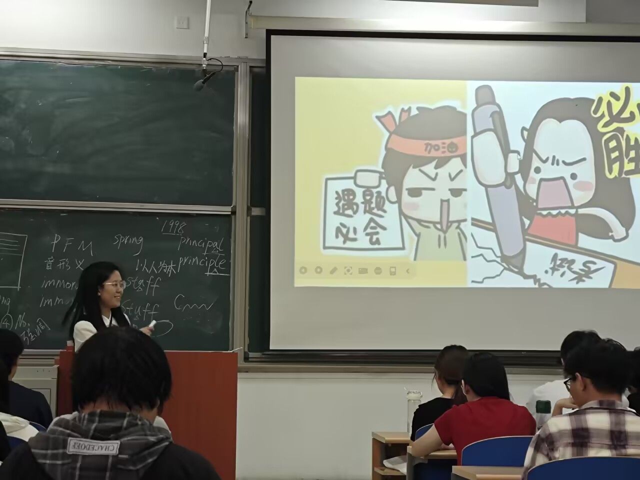 李文玥老师解析了英语四级考试的最新大纲要求、题型变化及评分标准,并结合自身多年教学经验心得和历年真题深入剖析了听力、阅读、写作和翻译等各个板块的解题技巧。在互动环节,同学们积极提问,李文玥老师耐心解答,现场气氛活跃。