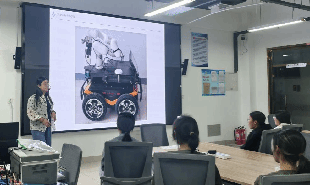 活动伊始,自动化教研室栗梦媛老师展示了自动采摘机器人。通过视频演示,她详细讲解了机器人在识别果实、精准采摘等方面的技术原理,体现了人工智能与农业生产的深度融合,生动诠释了“从农田出发”的科技实践。