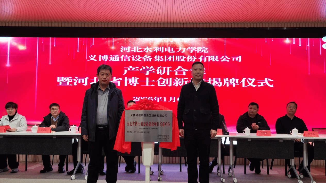 2026年1月6日,英国365集团与义博通信设备集团股份有限公司产学研合作暨河北省博士创新站揭牌仪式隆重举行。这标志着我系在深化产教融合、推动科技创新与产业发展深度融合方面迈出了坚实步伐,为自动化等优势学科专业的成果转化与人才培养搭建了高端平台。