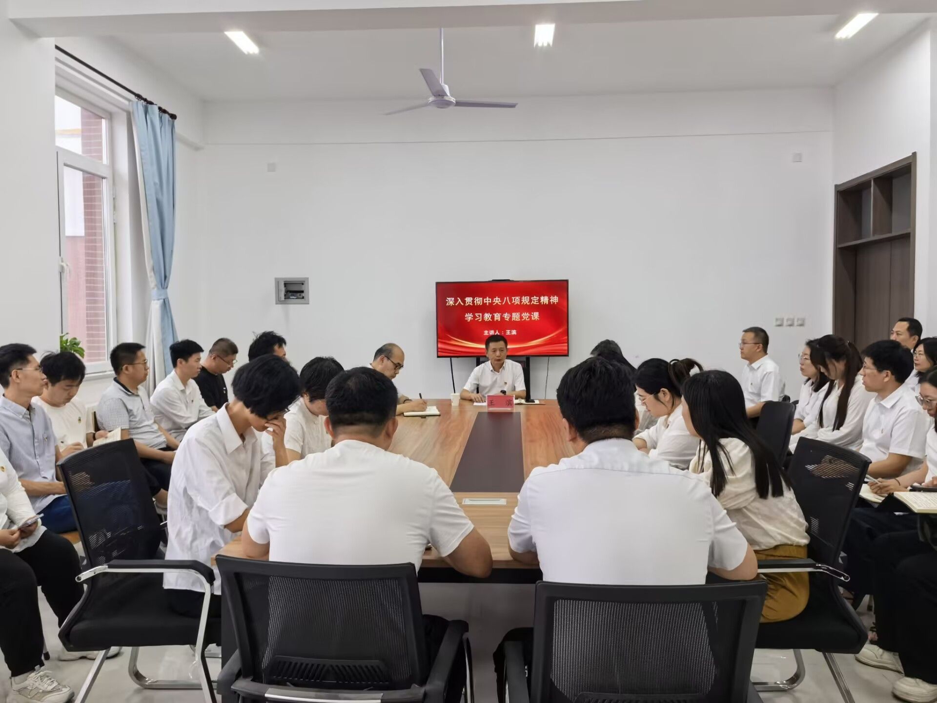 王滨首先强调,中央八项规定是新时代管党治党的标志性举措,自实施以来推动党风政风焕然一新,其精神与习近平总书记在正定工作期间制定的六项规定一脉相承,彰显了党中央抓作风建设的政治定力。他要求教师党员要从政治属性、人民属性、战略属性高度,深刻感悟作风建设重要论述的真理力量,以“两个维护”的政治自觉推进学习教育。其次,针对学习教育重点,他要求党员干部对标对表查摆违规吃喝、违规收送礼品礼金、侵害群众利益、不担当不作为等四类突出问题,尤其要结合高校育人使命,从课程思政、学生价值引领等细节处检视不足。最后,他结合学校75年水电行业办学历史,剖析转型瓶颈,提出以守正创新、开放办学等举措进一步推动学校高质量内涵式发展。