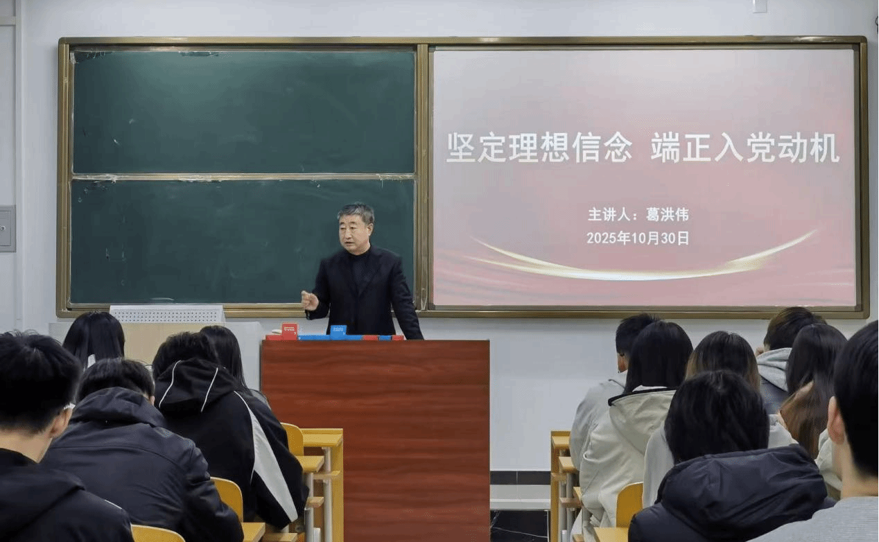 10月30日晚,系党委书记葛洪伟以“坚定理想信念,端正入党动机”为主题进行授课。培训从思想立场、行为规范、学习实践三个维度提出要求。思想上要筑牢信仰之基,深刻领悟党的初心使命,始终在思想上政治上行动上同党中央保持高度一致,以理论清醒保证政治坚定;行为上要严于律己、率先垂范,自觉践行社会主义核心价值观,展现新时代青年的责任与担当;学习上要坚持学用结合,把专业知识学习与服务群众、奉献社会相结合,主动投身志愿服务、社会实践等活动,在实践中锤炼党性、增长才干,以实际行动向党组织靠拢,努力成为合格的共产党员。