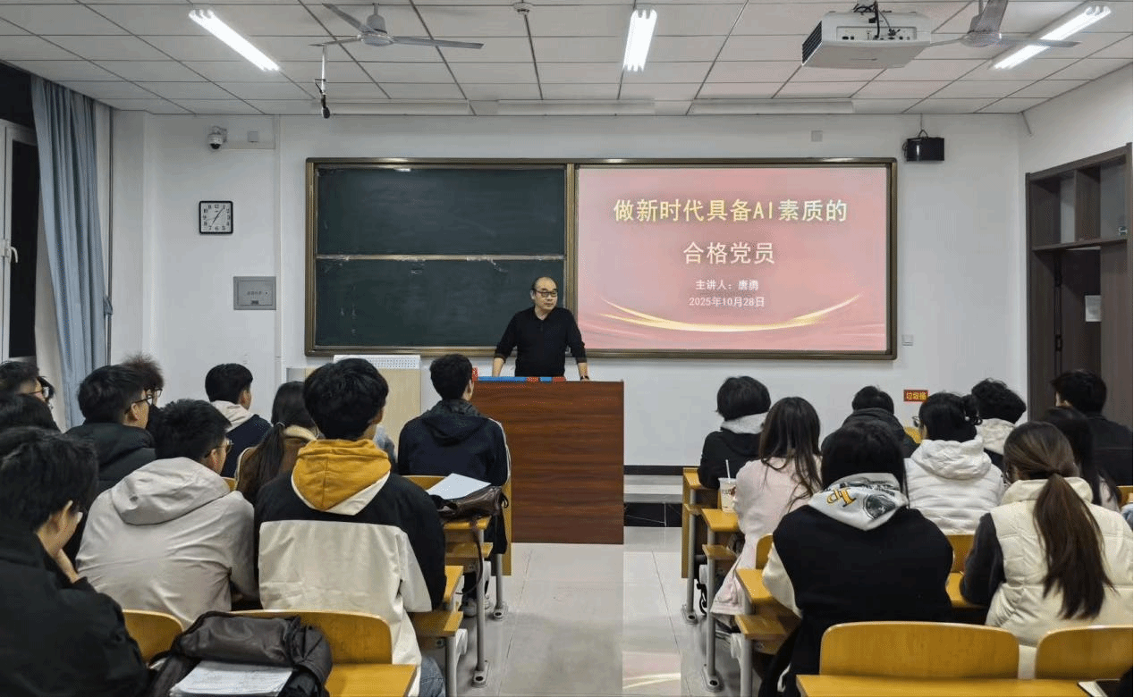 开班仪式后,唐勇主任以“做新时代具备AI素质的合格党员”为主题,重点解读AI时代背景下党员素养的融合要求,引导学员以党员标准严格自律,同步提升政治素养与专业能力,在品德修养、先锋模范作用发挥等方面树立标杆,推动人工智能技术与学习工作深度融合,以与时俱进的意识紧跟时代步伐,为党的事业发展与AI技术实践应用贡献青春力量。