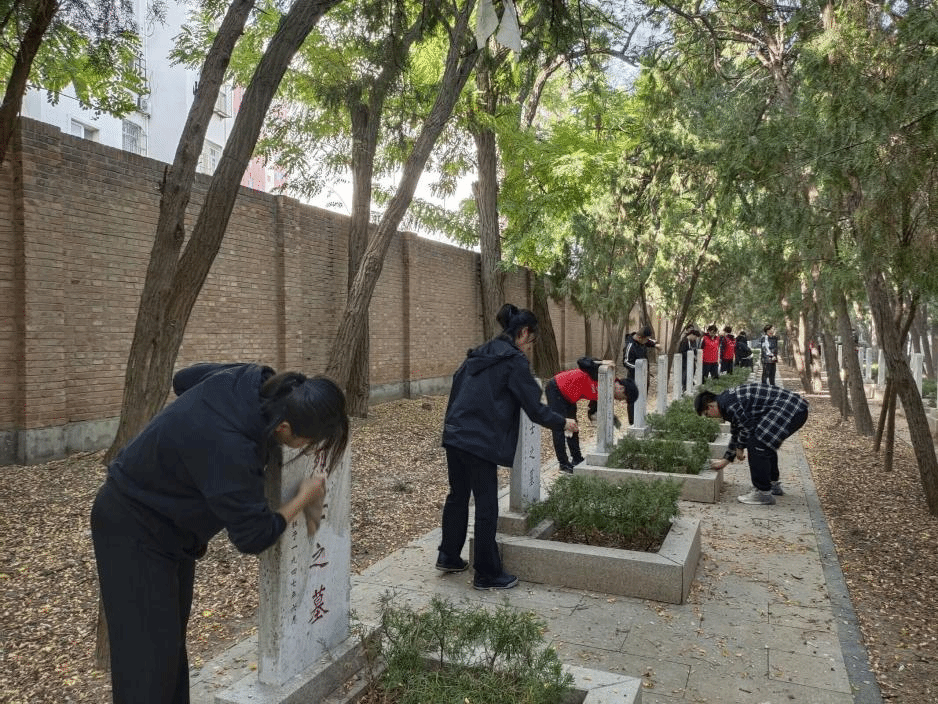 当日上午学生们列队整齐,怀着无比崇敬的心情到达沧州市烈士陵园,开展“缅怀革命先烈,争当时代先锋”为主题的志愿扫墓活动,对为保卫家乡、保卫祖国而献出青春热血的革命英烈表示沉痛的哀悼。学生们使用扫把、抹布等工具开始打扫烈士墓碑附近的垃圾落叶、清理墓园道路以及铲除周围杂草。