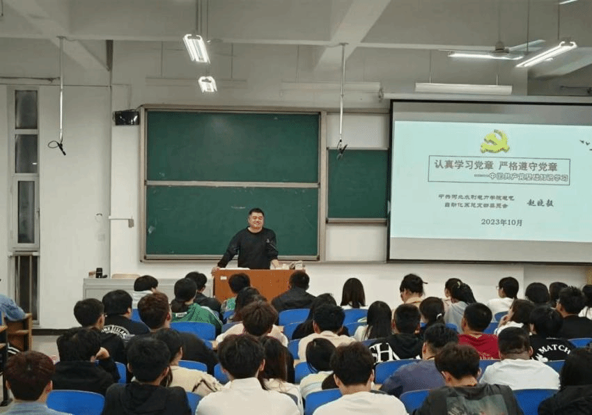10月23日晚,系副主任吉庆昌以“怎样成为一名合格的大学生党员”为主题,以“党员是什么”为引,从思想理念、日常行为等方面详细地讲解了怎样成为一名合格的大学生党员。并强调作为一名要加入中国共产党的青年大学生,在学习、生活等多个方面,要有“默默无闻、无私奉献”的奉献精神,要有“脚踏实地,实事求是”的不屈精神,努力做到“立大志、明大德、成大才、担大任”,不辜负党和国家对我们的殷切嘱托与期望。