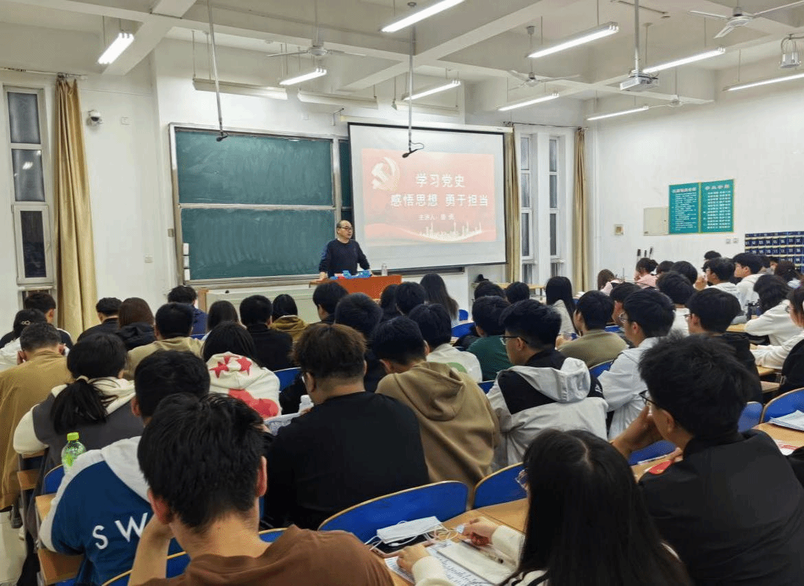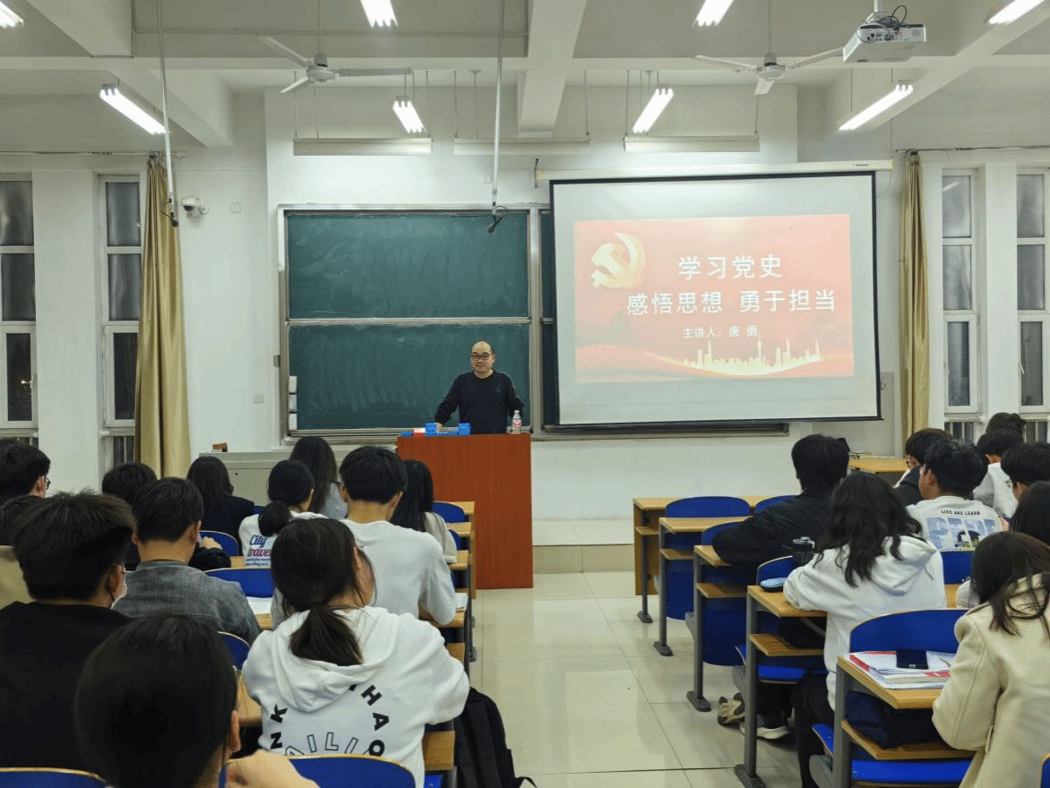 培训以“学习党史 感悟思想 勇于担当”为主题,系主任唐勇主要从三个部分进行了讲解。第一,要深入学习党的历史,了解党在各个历史时期的奋斗历程和取得的辉煌成就,深刻认识党的性质、宗旨和使命,从而坚定理想信念,增强历史使命感。第二,要深刻领悟党的思想,特别是要深入领会习近平新时代中国特色社会主义思想的核心要义和实践要求,把握其精神实质和实践指南,将其转化为推动工作的强大动力和实际行动。第三,要学会勇于担当,在学习和工作中积极发挥先锋模范带头作用,有敢于担当的精神和勇气,同时要积极与身边同学交流互动,及时发现问题、汇报问题和解决问题。
